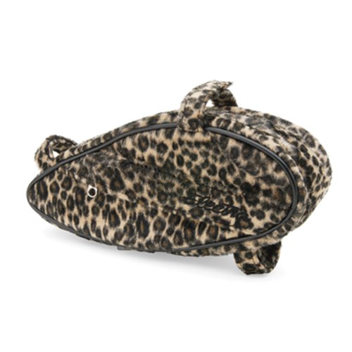 - Frame bag features faux leopard fur with zipper closure and attaches to frame with Velcro straps.